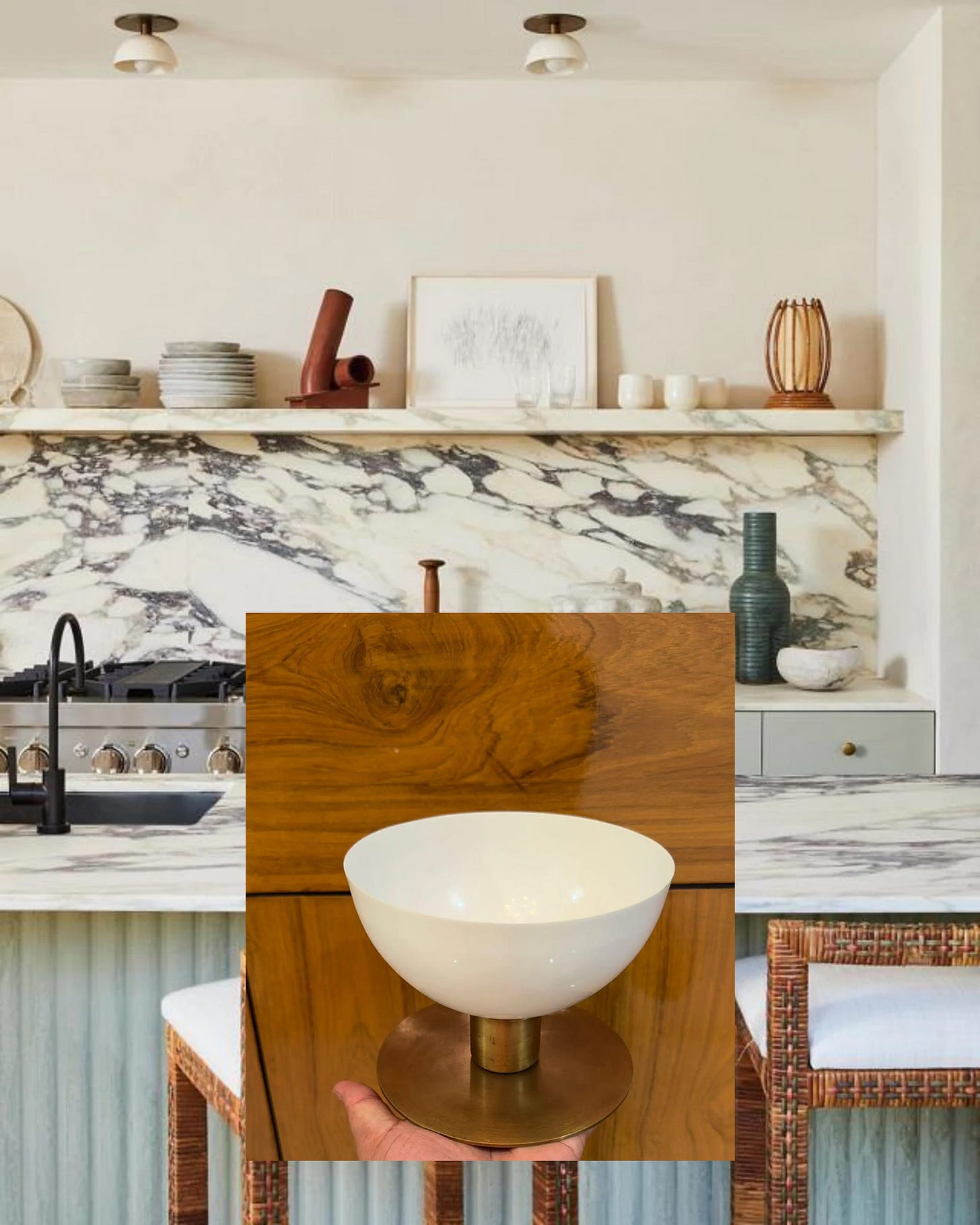 It would not be me without including vintage pieces. This Vintage rattan and cane sconce currently $143.33 and if I needed I would grab in a heartbeat.